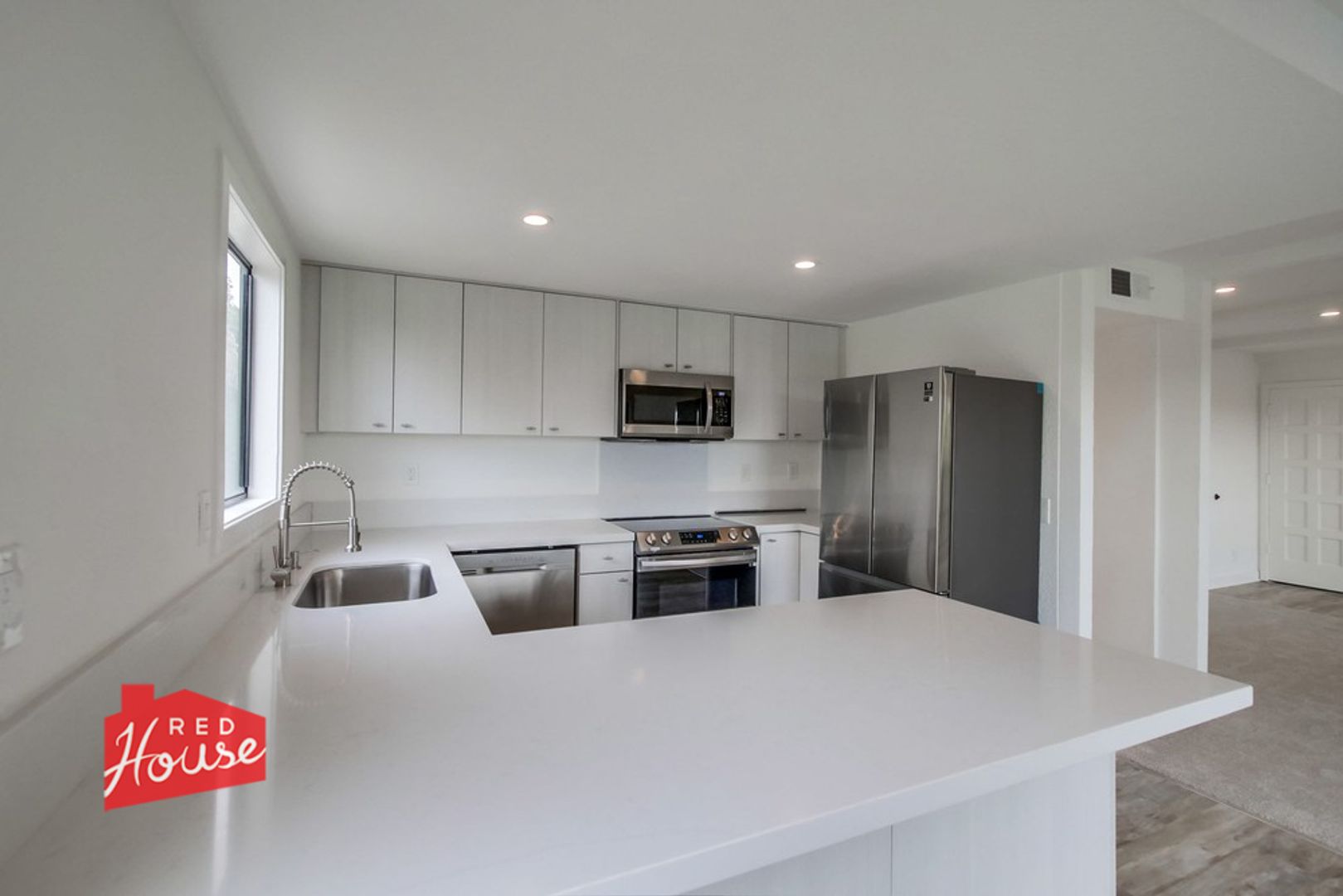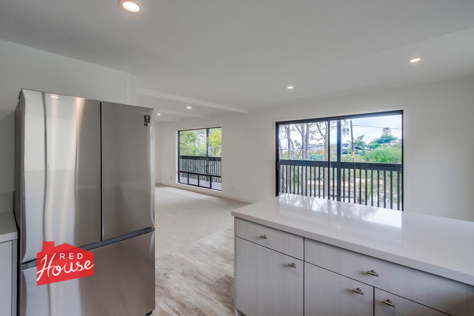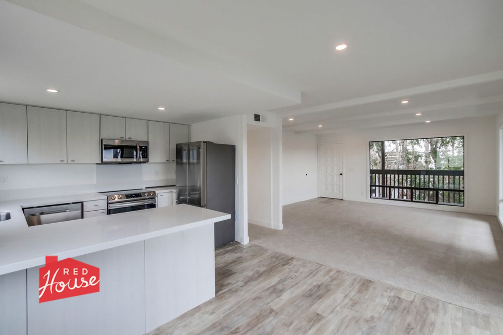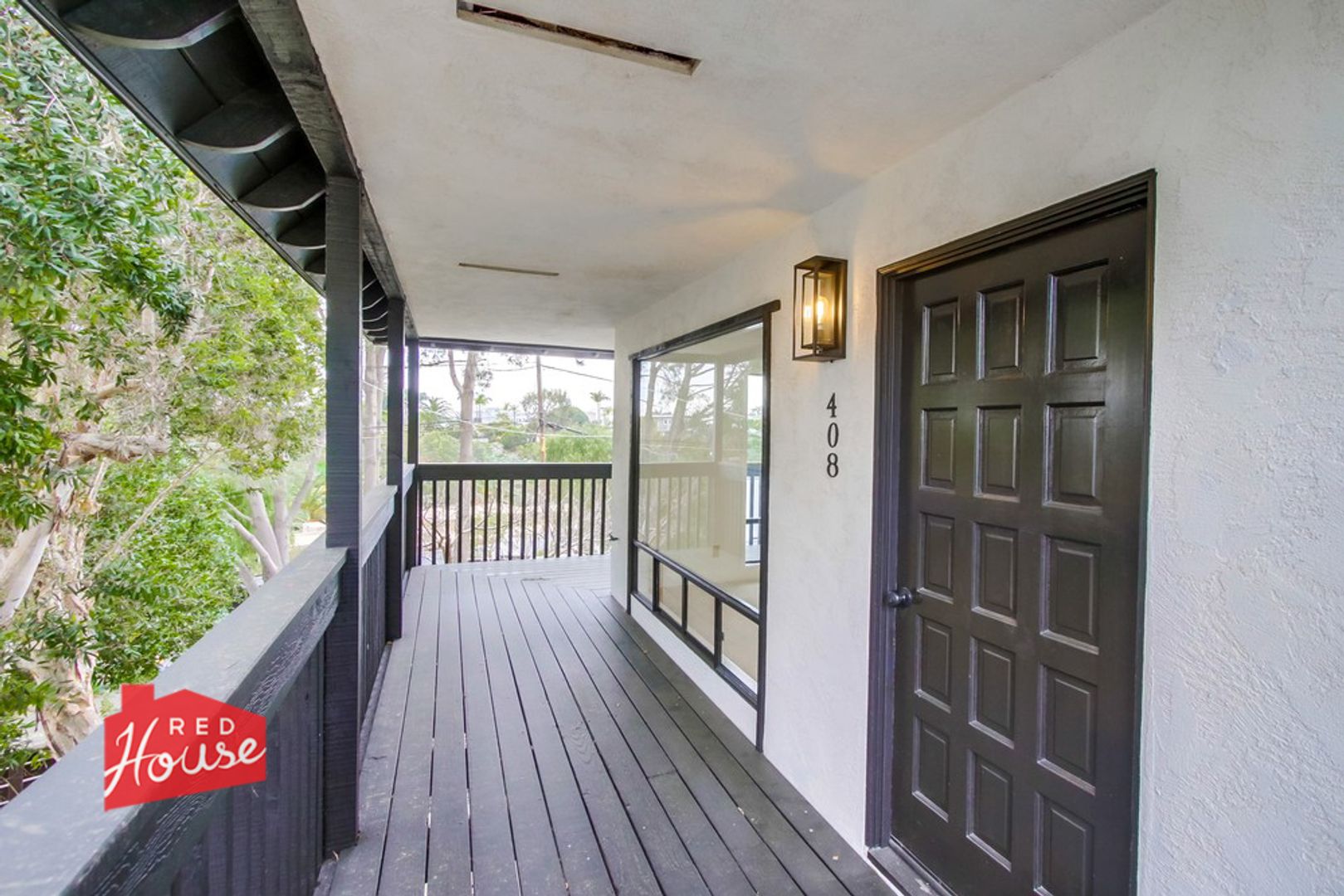 (Tenant occupied - Available Feb 15, 2026) This duplex was recently remodeled inside and out! The penthouse unit offers beautiful sunset views from the balcony that wraps around kitchen and living room. New hardscape flooring throughout most of the living area and cozy new carpet in all three bedrooms. Kitchen is outfitted with Quartz counter tops and new stainless-steel appliances. The master bedroom is located toward the back of the unit with large closet, ceiling fan, and remodeled master bathroom. Included is LED lighting, ceiling fans in all bedrooms, full size washer dryer located in the oversized 2 car detached garage. APPLICATIONS are filled out through the Red House Property Management website.